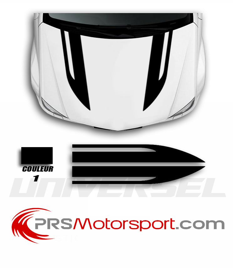 Cette déco universelle est composée d'1 stickers pour le capot de la voiture. Elle sera adaptée au modèle de votre voiture. L'application est facilité par son film transfert semi-transparent et souple.