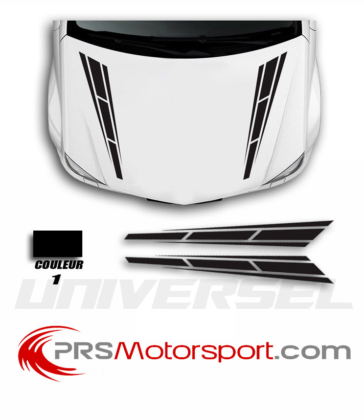 Cette déco universelle est composée d'1 stickers pour le capot de la voiture. Elle sera adaptée au modèle de votre voiture. L'application est facilité par son film transfert semi-transparent et souple.