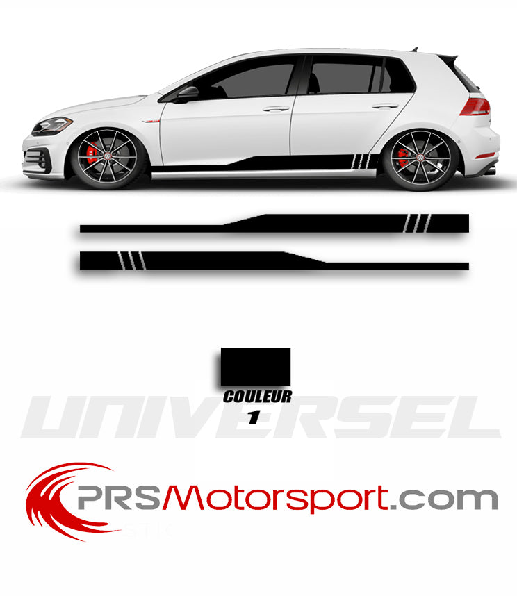Cette déco bande racing est composée de 2 stickers pour les 2 côtés de la voiture. Elle sera adaptée au modèle de votre voiture. L'application est facilité par son film transfert semi-transparent et souple.