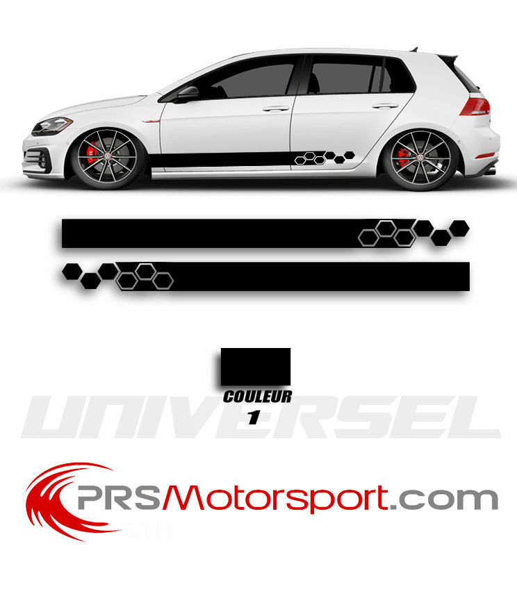 Cette déco bande racing est composée de 2 stickers pour les 2 côtés de la voiture. Elle sera adaptée au modèle de votre voiture. L'application est facilité par son film transfert semi-transparent et souple.