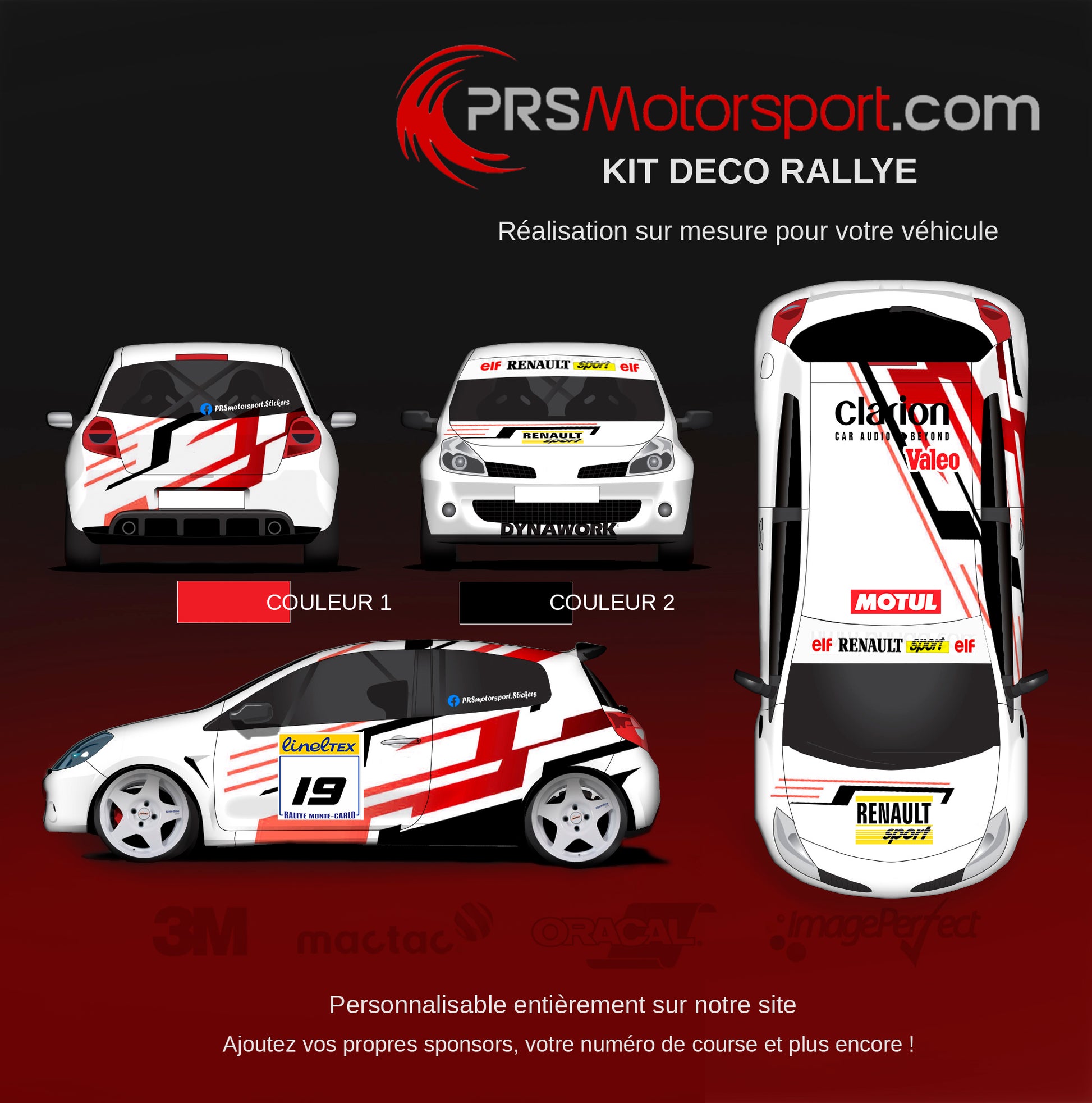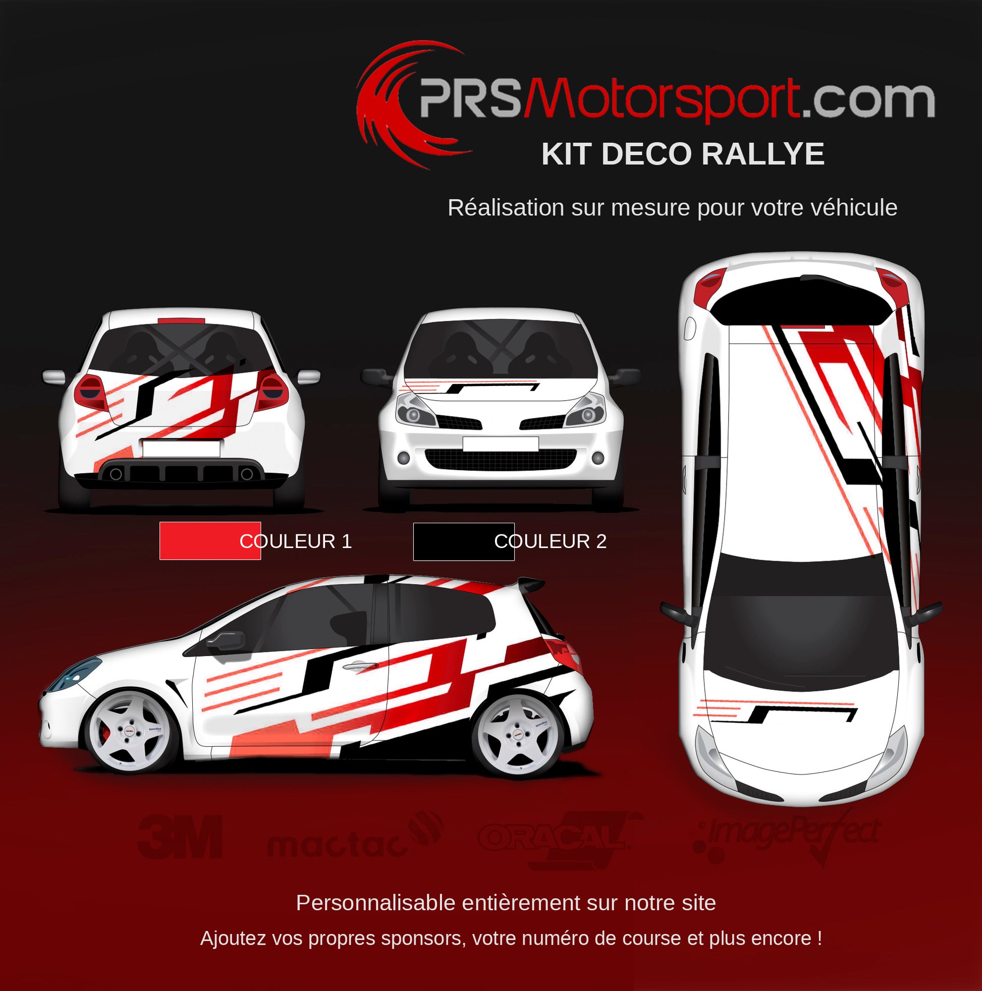 Ce kit déco est une excellente base pour créer votre déco complète. Rallye, circuit, 4x4.. chacune des déco rally sera adaptée à votre véhicule.